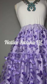 3 Tier 3D Lavender Butterflies Overlay Satin Skirt